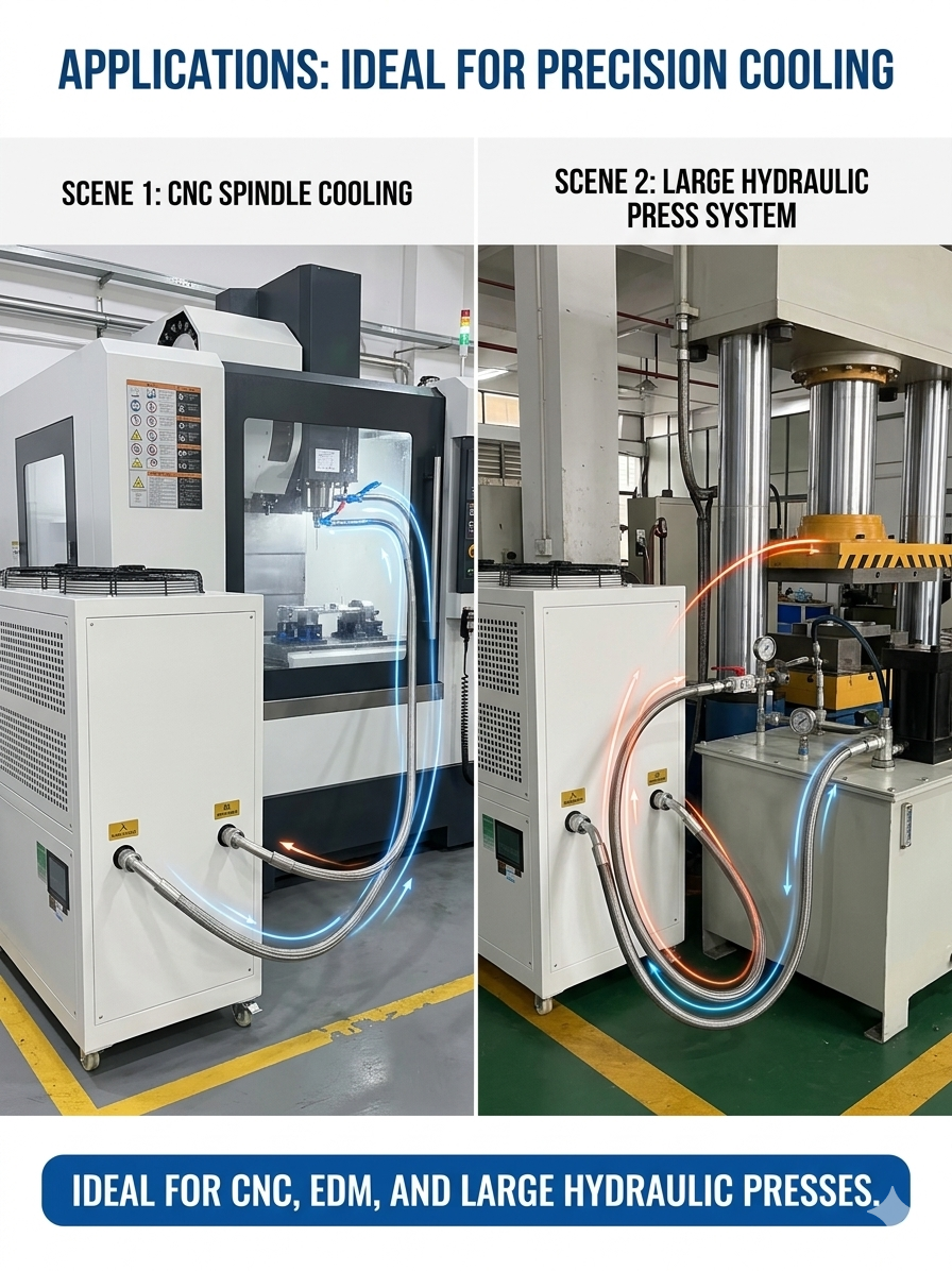 Ideal For: CNC Spindle Cooling, Hydraulic Press, Precision Grinding Machines, EDM Liquid Cooling, and Gearbox Lubrication Systems.