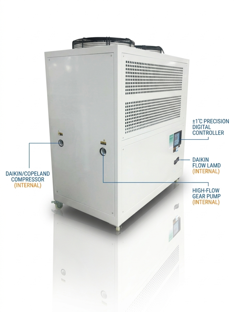 • Industrial Grade Components: Equipped with world-class compressors (Copeland/Daikin) and high-flow gear pumps for 24/7 durability.